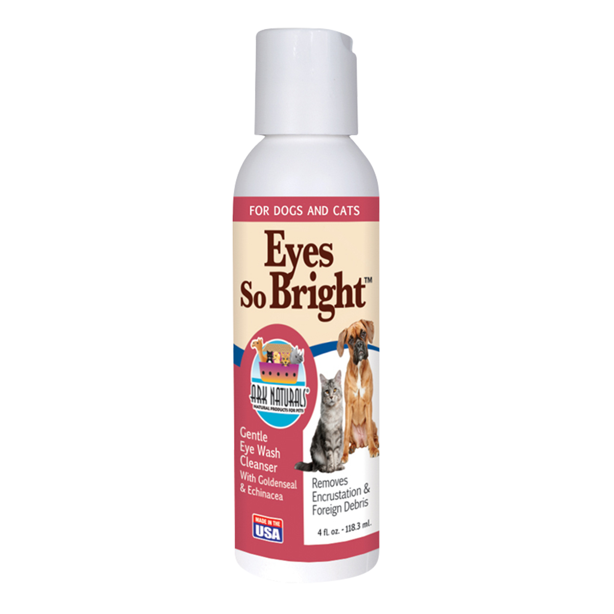 Gentle eye wash formulated to soothe and maintain healthy eyes. Eyes so Bright™ is great for removing foreign debris and encrustation that build up in the mucous membranes of your pet’s eyes. Active ingredients include aloe, goldenseal, and echinacea. Made in the USA.