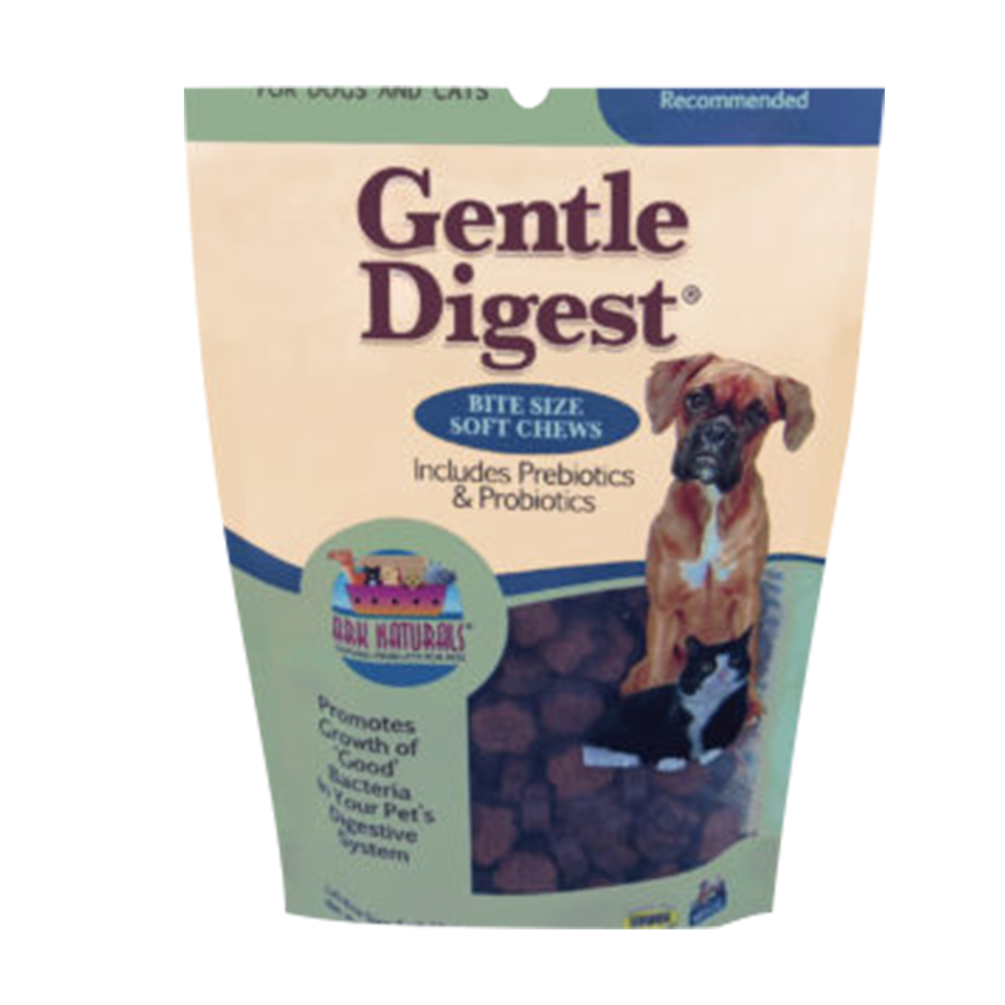 All mammals (including dogs, cats and humans) have numerous beneficial bacteria living in their digestive tracts (gut). Gentle Digest™ contains prebiotics and probiotics. Probiotics provides a source of beneficial intestinal bacteria and also helps to encourage their growth. Prebiotics help stimulate the growth and/or activity of probiotics. Helps to support a healthy immune system and support intestinal balance. Helpful for periodic issues with gas, flatulence, smelly and irregular stools. Helps to support digestion and absorption of critical nutrients and senior pets and pets under stress. Made in the USA.