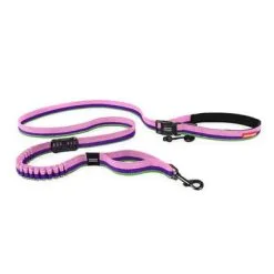 When used as a hand held leash the length is 6.5 ft. Use as a standard dog lead or unclip the handle to wear around waist/shoulder or use as a temporary tether Sliding buckle allows you to shorten the length of the leash if required Zero Shock Technology to cushion against sudden jolts Made from EzyDog Soft Touch™ Webbing and a neoprene lined handle D-Ring and Barrel lock for accessory attachment