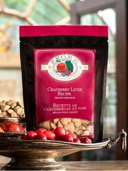 Fromm Four-Star Cranberry Liver Recipe dog treats are a tasty snack made with cranberries and liver, and at only two calories per treat, they are ideal for use as a training treat.