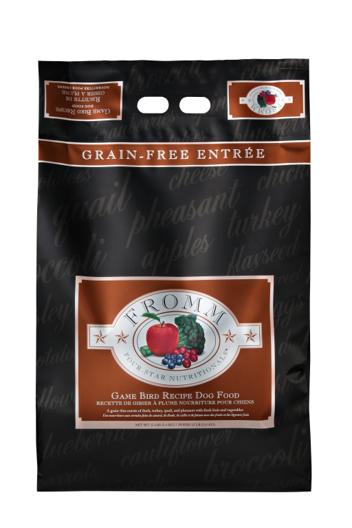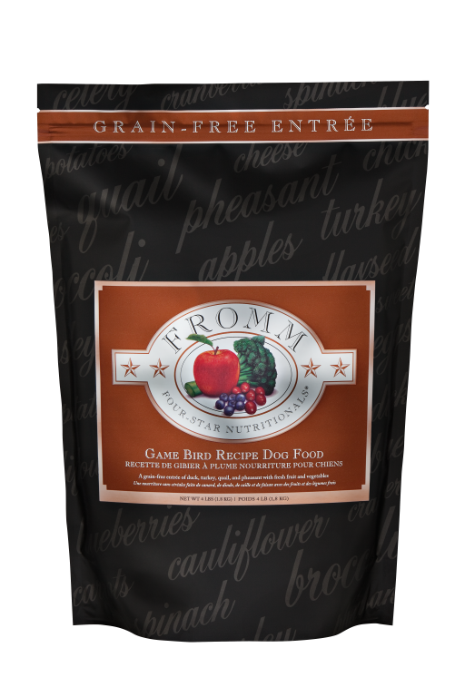 Fromm Four-Star Game Bird Recipe Dog Food is a grain-free blend of turkey, turkey broth, goose, and an assortment of fruits and vegetables. This distinctive blend is specially prepared to ensure consistency, quality, and superior taste in each and every bowl. Game Bird Recipe provides complete and balanced nutrition for dogs of all ages and can be alternated with other Fromm Four-Star recipes.