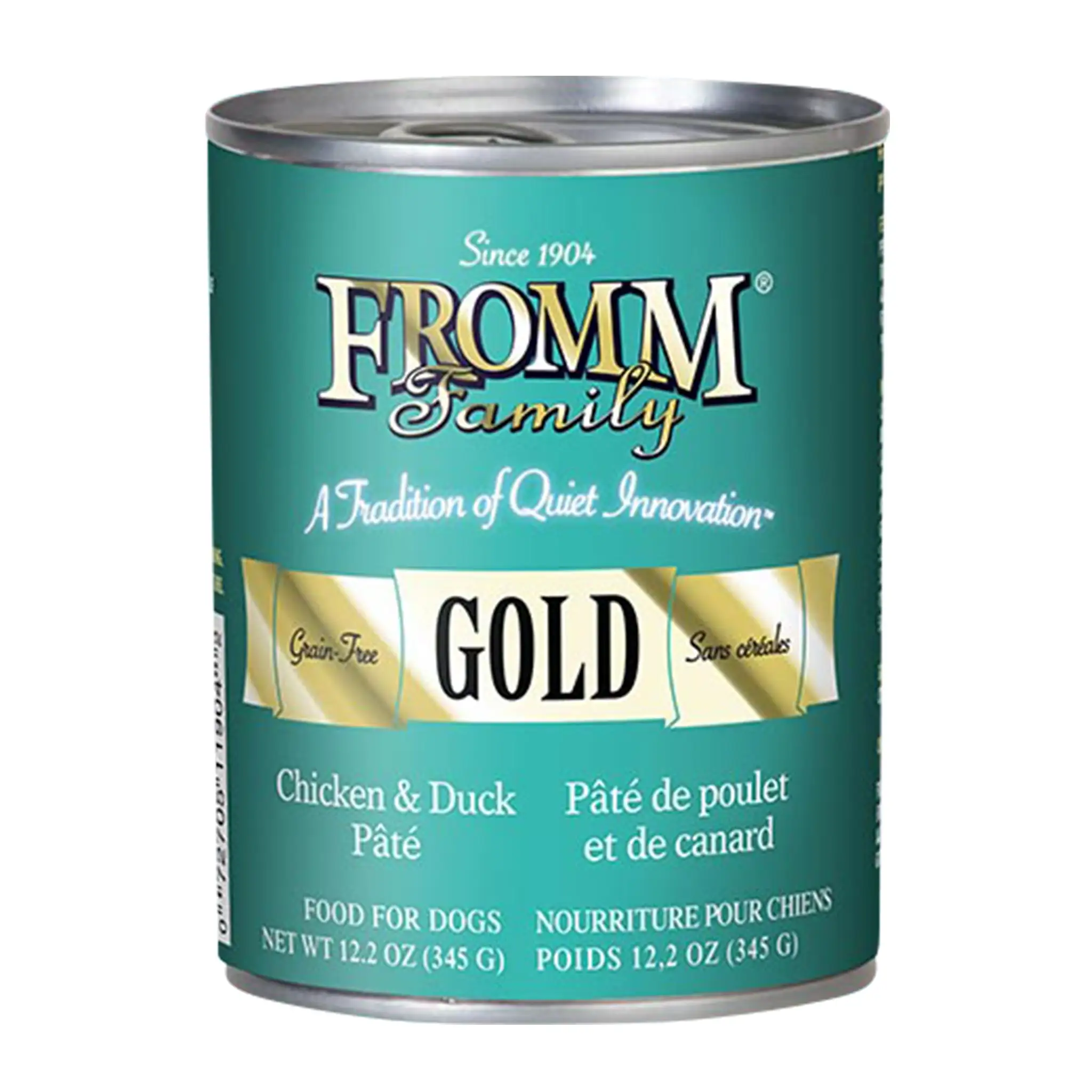 Fromm Chicken & Duck Pâté features finely minced chicken and duck cooked in chicken broth with potatoes, carrots, and peas. The recipe is prepared in small batches, ensuring consistency, quality, and superior taste. Chicken & Duck Pâté is complete and balanced for all life stages.
