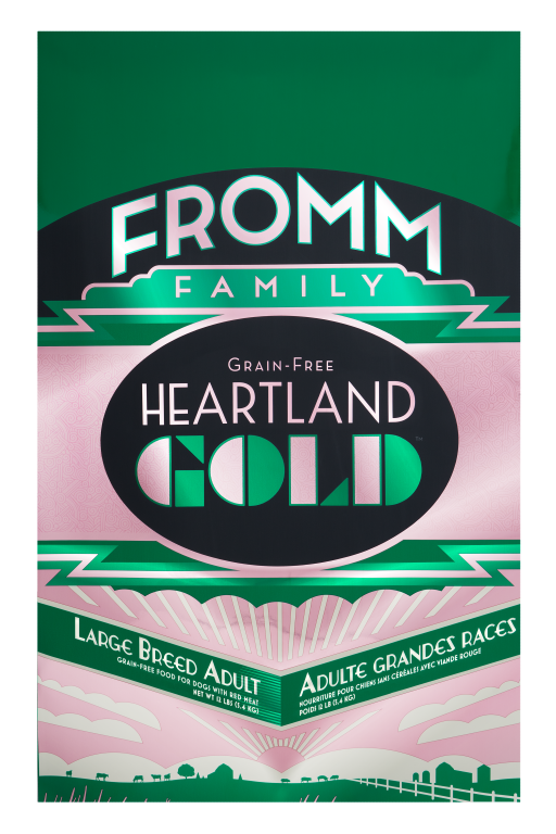 Fromm Family Heartland Gold® Large Breed Adult Food for Dogs is a grain-free red meat recipe for breeds with adult weights exceeding 50 pounds. Naturally formulated with beef, pork, and lamb. Enhanced with probiotics to aid digestion
