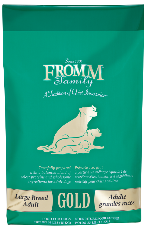 Fromm Family Large Breed Adult Gold Food for Dogs is specifically formulated for breeds with adult weights exceeding 50 pounds. Large Breed Adult Gold is specifically formulated to meet the nutritional needs of the large breed adult dog.