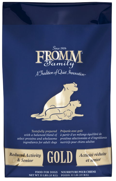 Fromm Family Reduced Activity & Senior Gold Food for Dogs is formulated to provide your less active adult dog or senior dog with complete and balanced nutrition.