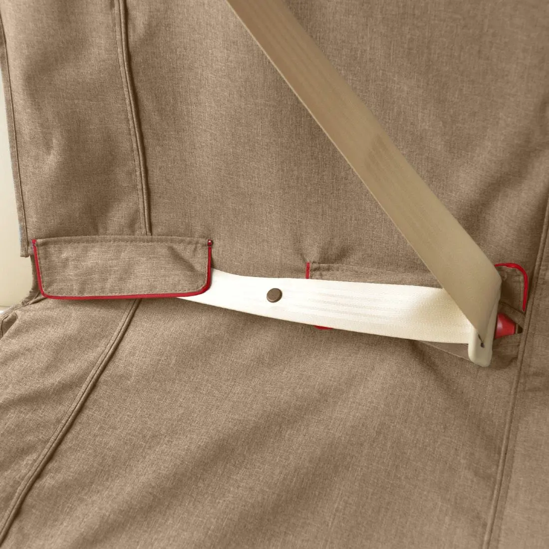 - Rigid plastic tubes attached to the underside of the cover can be tucked into the crevice where the seat back meets the base, to help secure them to the seat