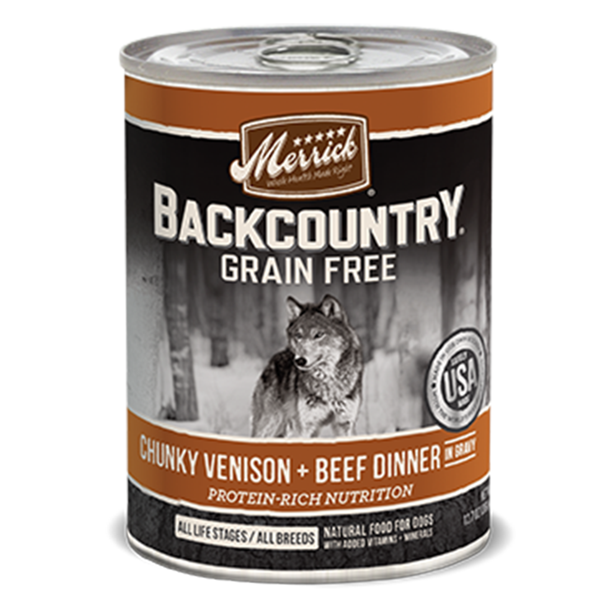 All-natural grain-free ancestral canine diet packed with protein that dogs crave. Merrick Backcountry canned stew recipes offer taste variety from exotic protein blends, fresh cut vegetables and hearty gravy. Safely cooked in the USA in our own kitchen with the world’s best ingredients. No ingredients from China.