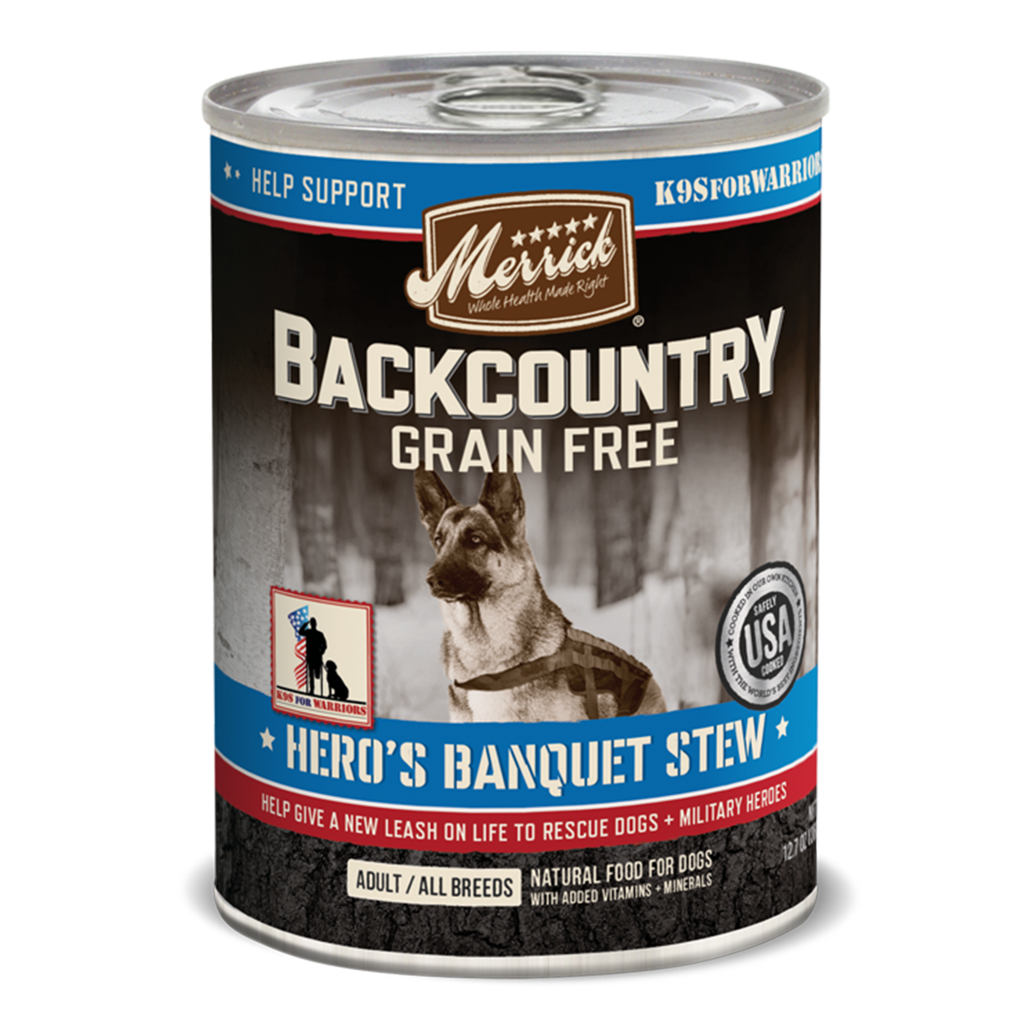 Hero’s Banquet recipes celebrate the work of our partner K9s For Warriors, whose mission is pairing specially trained rescue dogs with veterans suffering from post-traumatic stress disability (PTSD). Hero’s Banquet is available nationally year-round at Petco, independent pet supply stores and online.
