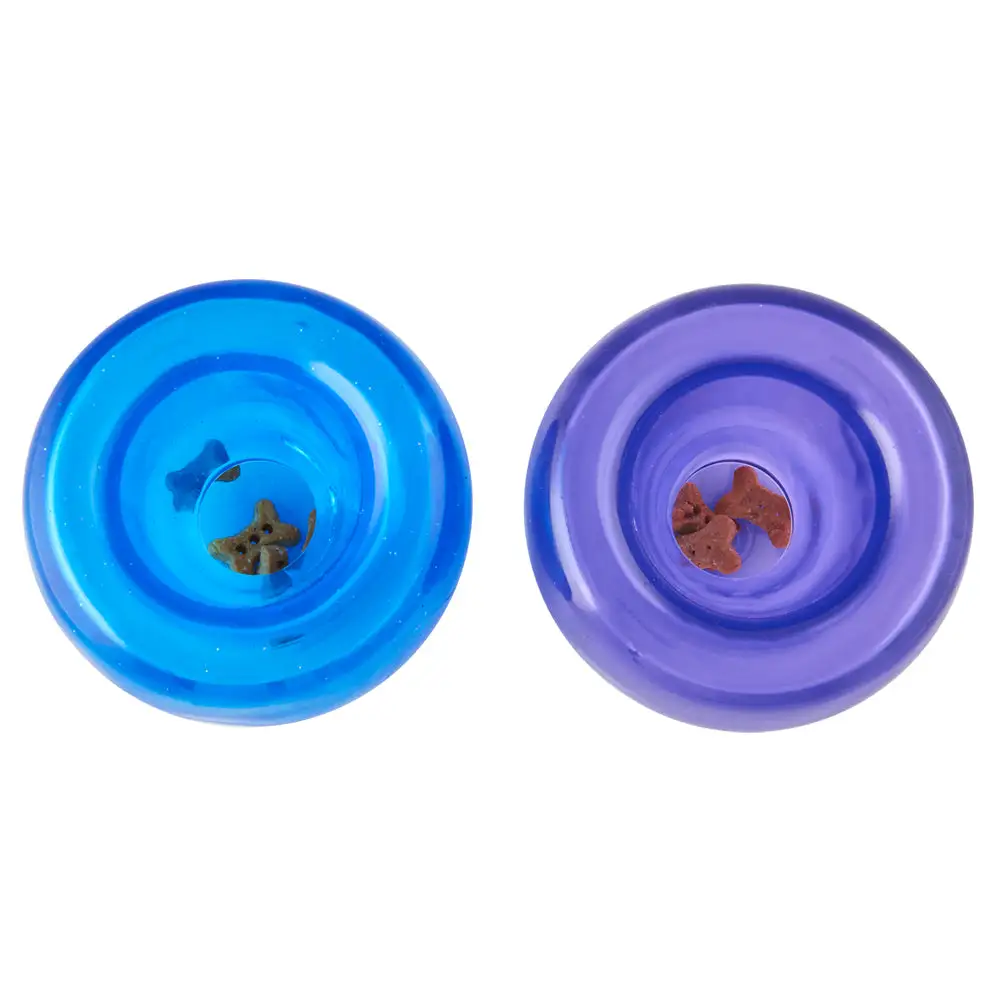 Lil’ Snoop is designed to activate a dog’s mind and energize its play. Snoop’s flexible opening pops out for easy loading and cleaning. Although Snoop is built for durability, it’s intended for puzzle-play, not chewing, so it is not rated on our Durability Scale. Snoop is not to be left with dogs unattended. Available in Purple and Blue. 4″ in diameter. Easy to clean by hand, or on the top rack of the dishwasher. Like all Orbee-Tuff® toys, Lil’ Snoop is made in the USA, non-toxic, bouncy, minty, chewy, buoyant and always 100% guaranteed.
