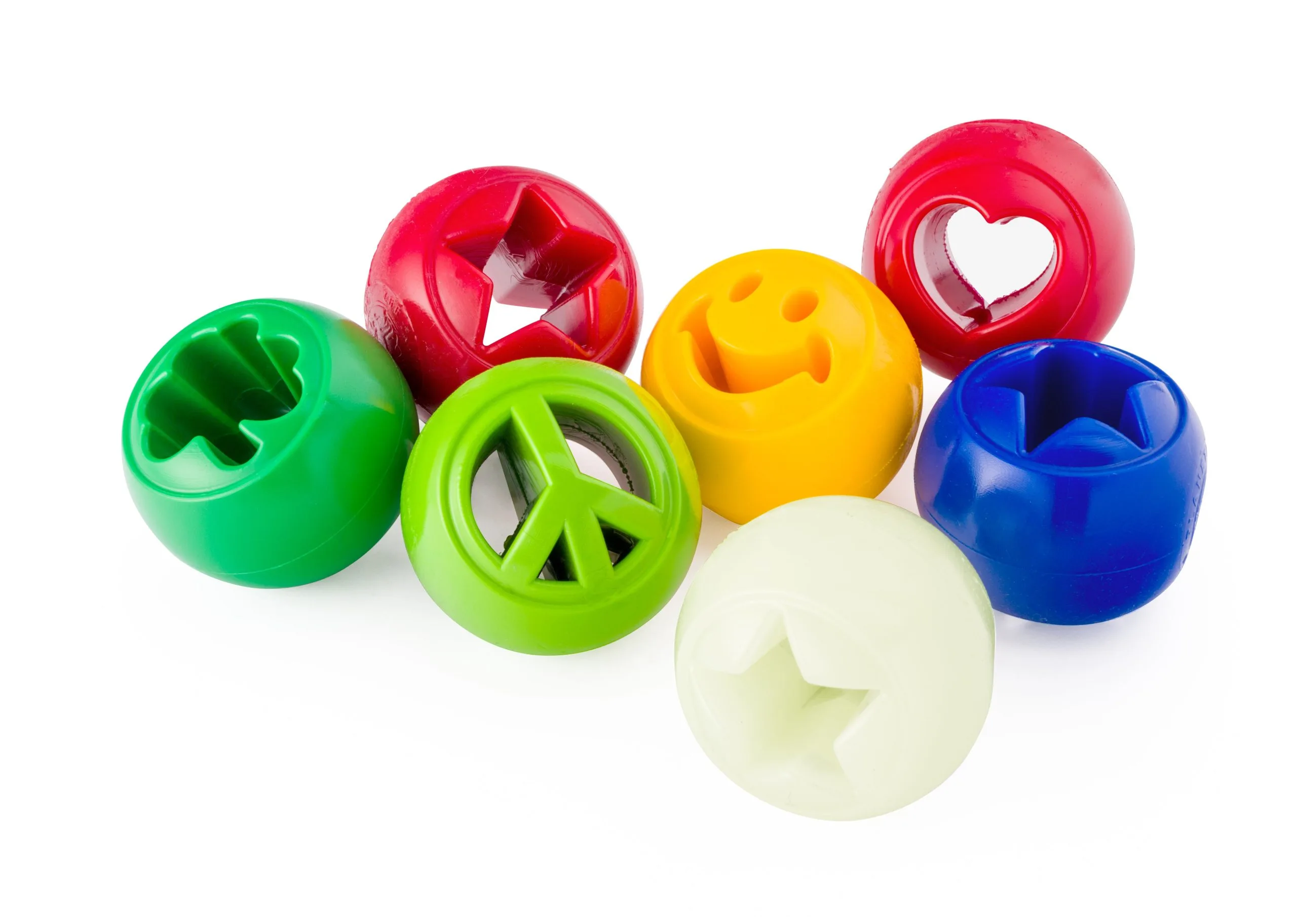 Stuff it! Orbee-Tuff® Nooks™ are the perfect toy for a whole new chew. Available in a Yellow Smiley Face, Green Peace sign, Red Heart, Royal Blue Star, Red Star, Shamrock and Lime Green Paw! Nooks is 2.5″, making a perfect fit in the Orbee-Tuff Snoop®, or the Wood Chuck®. Nooks™ is rated 5 out 5 chompers on our Durability Scale, making it suitable for most chewers. 100% GUARANTEED. Any time. Every time. Made in the USA.