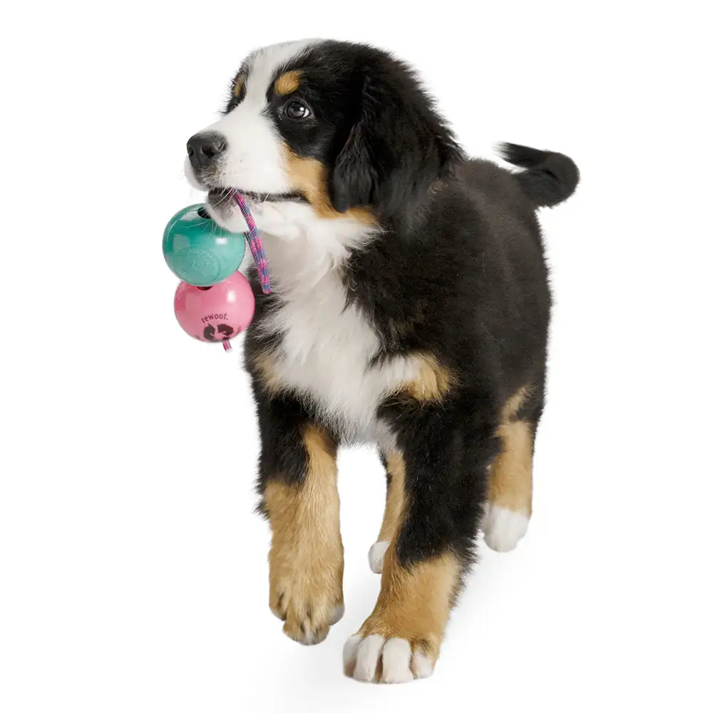 Our RecycleBall Value Pack includes 2 balls at 2.5″ each, tied together with off-spec climbing rope we get from our local neighbor, Sterling Rope. The Value Pack can be enjoyed by using the rope for double-toss for fetchers, or untied for double the fun. RecycleToy colors vary depending on our supply. Colors cannot be guaranteed when ordering. The RecycleBall Value Pack is rated 5 out of 5 on our Durability Scale. Note that the rope is not included in the durability rating and should not be left with a dog unattended. 100% GUARANTEED. Any time. Every time. Made in the USA.