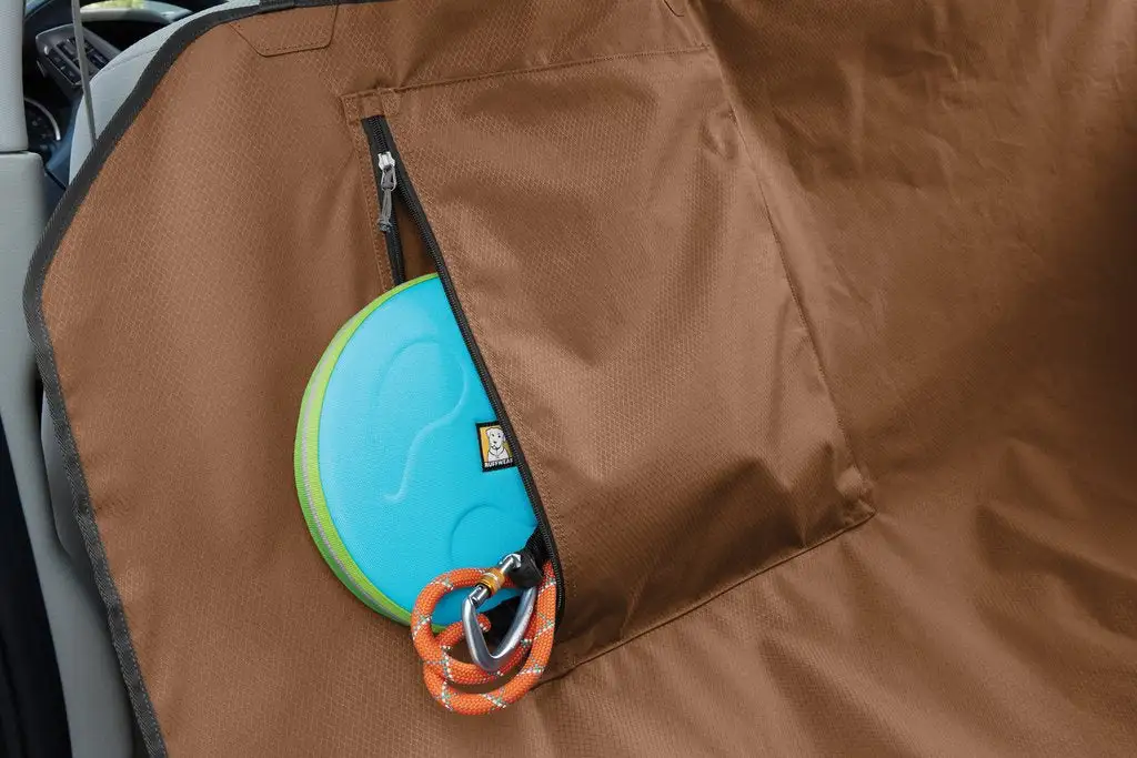 The Ruffwear Dirtbag™ Seat Cover is a durable, waterproof cover that shields vehicle seats from the remnants of dog adventures. Our convertible design can be installed in a traditional or hammock configuration and maintains access to seatbelts. Secure attachments keep the cover in place, and non-slip fabric keeps dogs stable during the ride. Easy to fit and remove, cleans with a shake, or is machine washable. Fits the backseat of most passenger vehicles.