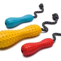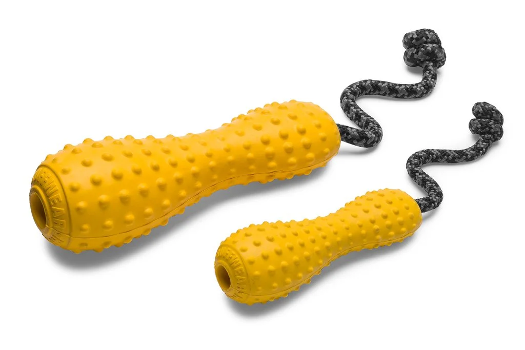The Gourdo rubber toy is designed for interactive play, from tugging to throwing, this durable rubber toy does it all. The kernmantle rope lanyard makes it easy to throw and pick up, while avoiding the slobbery rubber end.