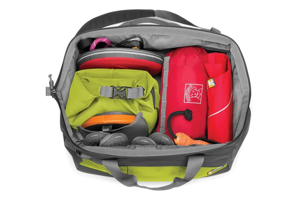 The Ruffwear Haul Bag™ keeps dog gear organized and accessible wherever they go: car camping, road tripping, or visiting friends. Store food, bowls, leashes, toys, and pick up bags in our wide-opening gatemouth travel bag for full access to contents. Interior and exterior zippered and mesh pockets keep gear organized. ID sleeve displays important information.