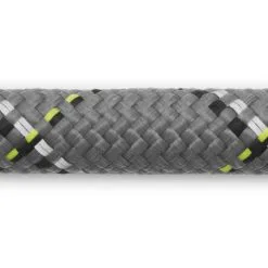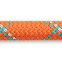 Strong, supple, reflective kernmantle rope with locking carabiner.