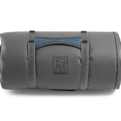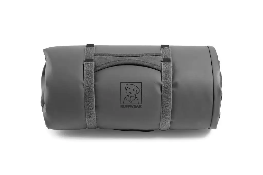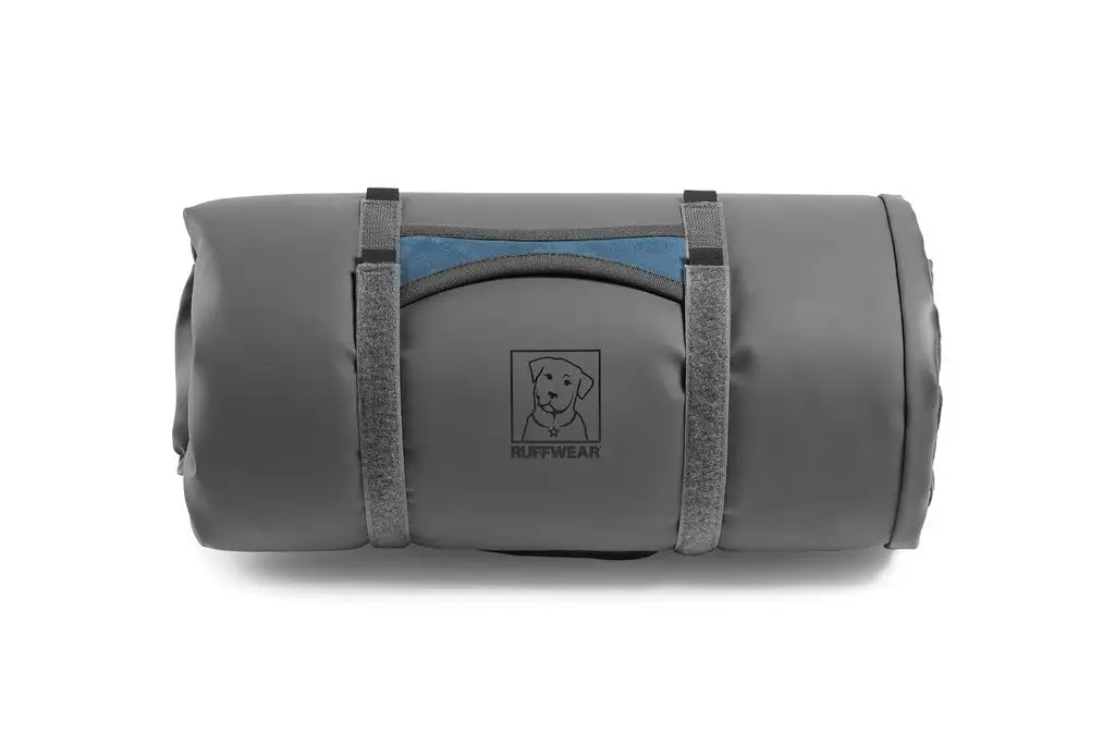 The Ruffwear Mt. Bachelor Pad™ is a low-profile, portable bedroll that gives dogs a sense of home in different environments. This easy-to-clean dog bed covers and protects surfaces from dirt and dog hair. It rolls up and secures with integrated hook and loop straps for easy portability and travel.