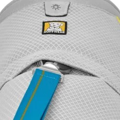 The Ruffwear Swamp Cooler provides protection from the sun and cooling through evaporation. In warm climates, dogs typically stay cool by seeking shade during the heat of the day and moving around in cooler temperatures. The Swamp Cooler allows dogs to perform in hot climates. To activate the Swamp Cooler, soak in water, wring out and place on your dog. The light-colored fabric reflects solar radiation, while evaporative cooling pulls heat from the dog. The integrated leash portal allows leash attachment when the Swamp Cooler is worn over our Front Range™, Hi & Light™ or Web Master™ Harnesses.