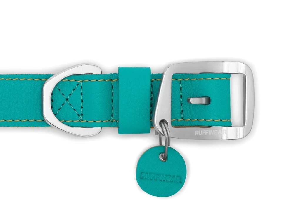 Packed full of Ruffwear’s essential collar features: separate ID tag attachment point with tag silencer, strong and comfortable leather, and aluminum D-ring.