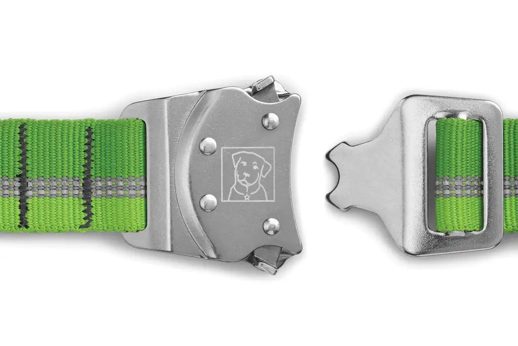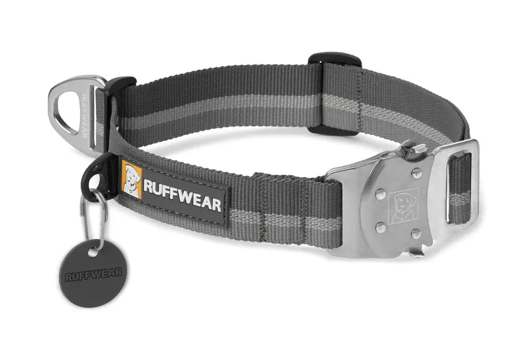 The Ruffwear Top Rope™ Collar offers strength and reliability with our all-metal side-release Talon Buckle™. Positive retention and peace of mind come standard. The collar’s design allows you to conveniently position the V-ring attachment at the top of the dog’s neck for quick leash clip-in.
